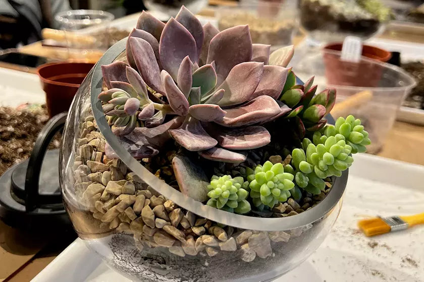 Immerse yourself in the world of terrariums and create your own stunning, open-face glass globe filled with lush plants. Our expert instructors will guide you through the process of layering soil, selecting the perfect plants, and designing a beautiful, living work of art. You'll also learn how to care for your terrarium to ensure it thrives long after the workshop ends.